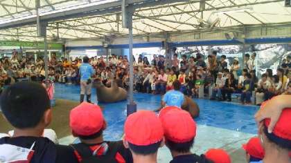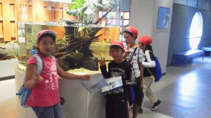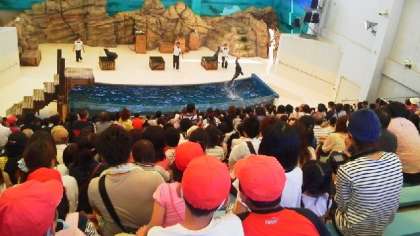 鳥羽水族館ではグループ行動。思い思いに楽しんでいます。