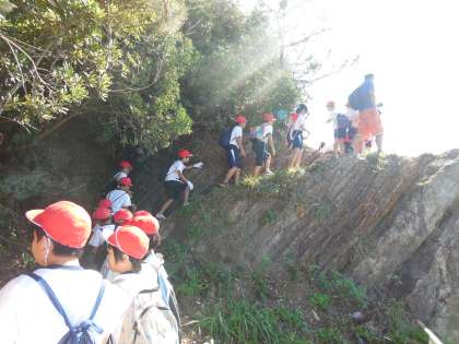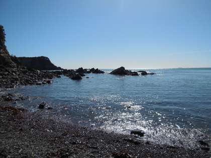 朝のまぶしい太陽の日差し,さわやかな青空と青い海。
