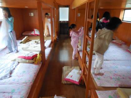 今日で退所するので,使った寝具やバンガローをきれいに片づけました。