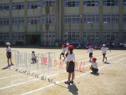 1・2年生で2回目の障害物競走の練習をしました。1年生が上手に準備をしてくれたおかげで,2年生もしっかり練習ができました。2年生も1年生のために準備を手伝い,力をあわせてよい練習ができました。今日は,1年生のすてきなところをたくさん見せてもらい,2年生もぜひまねしたいねと話しました。