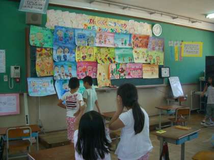 図工の時間に取り組んでいる「おはなしの絵」が出来上がってきました。どの子も想像を膨らませて,楽しく作品づくりに取り組んでいます。
