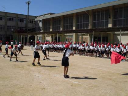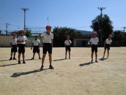 1年から6年までが集まって、応援団を中心にみんなで応援の練習をしました。