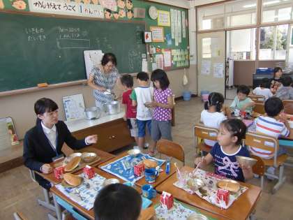 今日から3週間の予定で養護の先生になるための教育実習が始まりました。大学生2人が四錦の子と仲良く過ごしながら実習します。