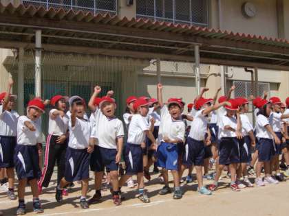 全校練習・赤組応援