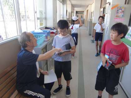 中身は,「運動会はいつごろ始まったのか?」ということでしたが,質問の中身よりもむしろ敬語を使った丁寧な口調でインタビューをお願いする3年生に驚きました。担任の指導が届いています。