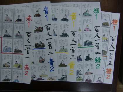 グループは,赤1→赤2→青1→青2→黄1→黄2→緑1→緑2→橙1→橙2の10です。橙2をクリアすれば『百人一首完全制覇!』ということです。
