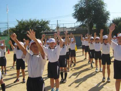 全校練習の中に全校ダンスがありました。踊り慣れたというか踊りこなしている感じの3年生の踊りでした。赤組も白組も元気いっぱいに踊りました。