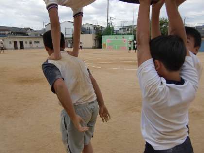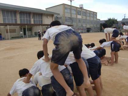 6年生が今年も砂まみれになりながら組体操の練習をしています。それ自体は特に珍しい光景ではないのですが…。