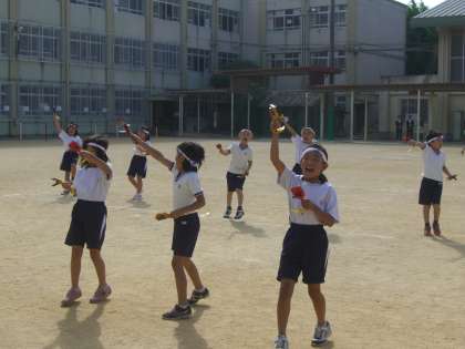 「よさこいエイサー」の練習もいよいよ明日のリハーサルを残すだけとなりました。今日は,1年生が踊りを見に来てくれました。