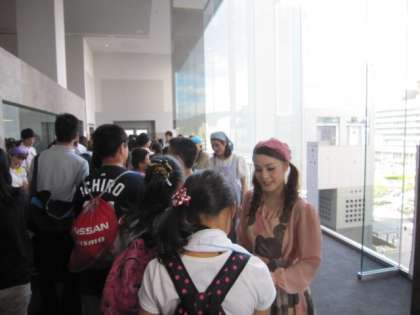 京都市の6年生が集まって、京都駅にある京都劇場で演劇鑑賞教室がありました。劇団四季の「人間になりたかった猫」というミュージカルを鑑賞しました。プロの歌や踊りを初めて見た子どもたちがほとんどでした。最後にキャストのみなさんが通路で送っていただき、心に残ったことでしょう。