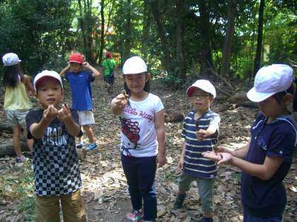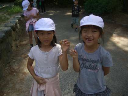 1年生の頃にもよく吉田山に行きました。ちょうど1年前の秋には,どんぐりもいっぱい拾いました。今年も立派などんぐりがたくさん落ちていて,子どもたちは大喜びでした。