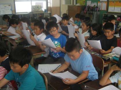 社会科の学習で,スーパーマーケットの工夫について学習しています。来週には,実際に「イズミヤ」さんに出かけて店内の様子を見せてもらいます。商品がどのように展示されているのか,お店の前に並ぶまでにはどんな作業工程があるのかなどを実際に見て学んできます。学年全員で行くので,調べることの確認などを一緒に学習しました。