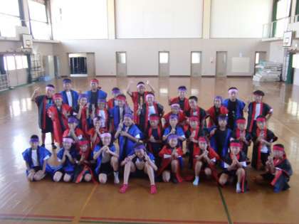 踊り終えた4年生の記念撮影です。都合がつかずにどうしても参加できなかった子もいますが,その子の分まで頑張って踊れたと思います。
