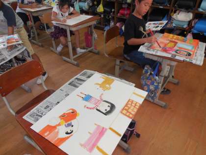 18日(金)の授業参観のときには,教室にこの「お話の絵」が掲示される予定です。