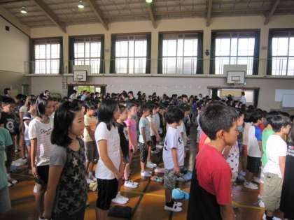 今日の終業式の中で、校長先生から二人の「かっこいい しきんの子」が紹介されました。