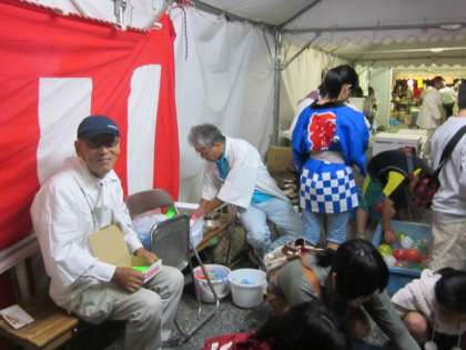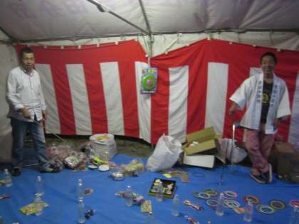 地域の方が、輪投げやヨーヨーつり、綿菓子、焼きそば、フランクフルト・・・のお店をされています。