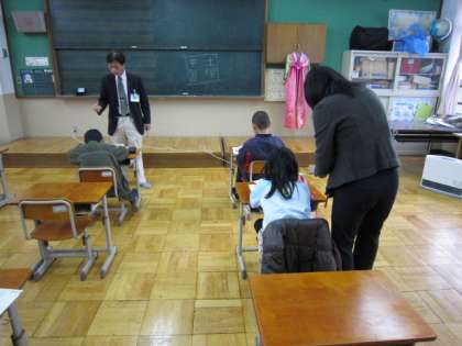朝,9時から10時30分までは,国際ルームで,一人自習に取り組む土曜学習です。今日は,学生ボランティアの方々ではなく,本校,教頭,副教頭の指導のプロが,子どもたちの指導・支援者として関わっています。教頭先生は,鉛筆の持ち方について,気になる子どもの指導をきめ細かくしていました。