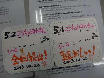 そこで例年のように,全6回の答案をまとめて持って来た子にカードを渡すことにしました。