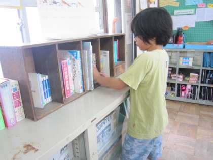 5年1組では,ぶくぶくタイムがある木曜日を教室美化DAYとしています。普段教室以外を掃除している人が,教室の普段掃除できないところを整理したり掃除したりします。今日は掃除のチャイムが鳴る前から本棚の整理を始めている人がいました。