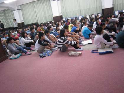 はじめに全体でオリエンテーションを受けました。今日は子どもたちは一人の大人として活動します。子ども同士も敬語で話します。各お店の大人の人も,子どもたちを一人の大人として敬語で接して下さいます。