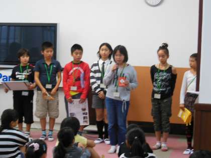 昼食後の全体会では,各代表者から,お店のアピールが行われました。これを買うとお得ですよ…こんなサービスをしていますよ…など。代表者も,最初に比べて慣れてきた様子です。