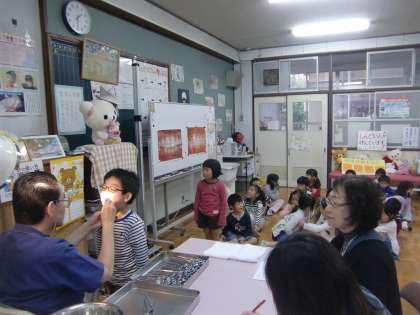 並んで順番を待っていた1年生の男の子が,いよいよ自分の番になり歯科の先生の前に進み出ました。そして,さわやかに,「よろしくおねがいします!」。たまたまそばにいた私の口から,思わず「すばらしい」。
