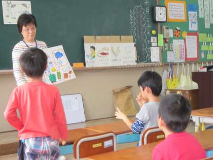 先週と今週に分けて,栄養教諭による「食の学習」がありました。今回は,牛乳について教えてもらいました。