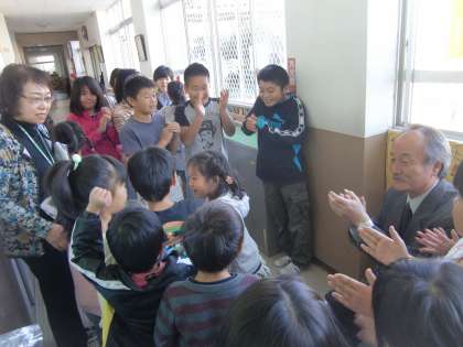 まずは,1の1からです。ドキドキしているのが手に取るように分かりますが,1の2の友だちや高学年の先輩たちが見守ってくれている中で,堂々と話ができました。