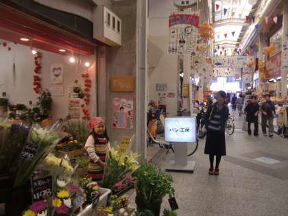 商店街を歩く人々は本物の買い物客です。「いらっしゃいませ!」と景気づけのようないい声が出したい,出さねば,と子どもたちは分かっています。分かっていますが,そう簡単には出せません。