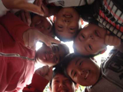 3枚目は,なぜか頭をくっつけて集まってじゃんけんしているグループがあったので,カメラをもぐりこませて下から撮ってみました。