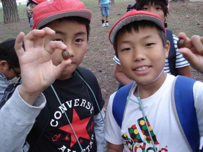 木々の葉っぱが紅葉し,どんぐりも発見!