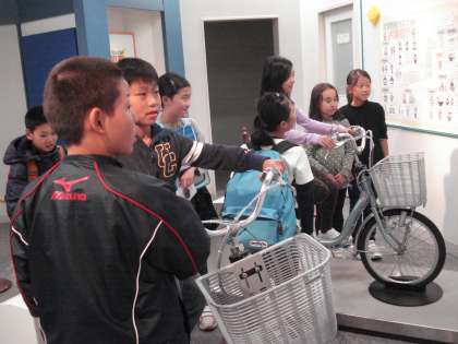 自転車の安全な運転の仕方について体験するコーナー…