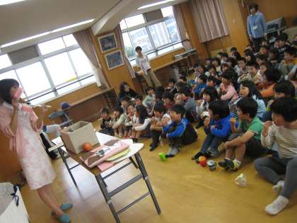 今日の5時間目に,1,2年生の子ども達が,学校歯科医さん,歯科衛生士さんから歯みがきの仕方や,虫歯にならないように,どのように生活をしたらよいかを教えてもらいました。