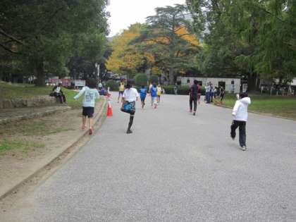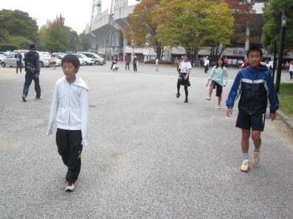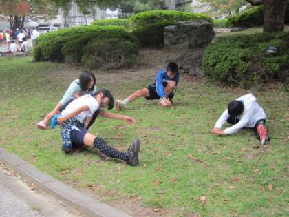 開会式が終わり、競技が始まるまで、自主的にアップをしています。