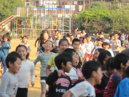 今日は、ランニングの2日目です。昨日に引き続き、やる気に満ち溢れています。初めの体ならしのウォーキングから、速く走りたい気持ちがいっぱいに出ています。その後、音楽が変わると、待ってましたとばかりにスタートしました。