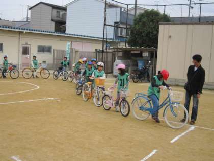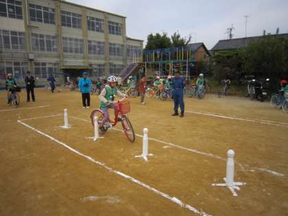 高学年は、テストがあるのですが、3年生以下の子どもたちには、テストはありません。だから免許証ももらえないのです。でも、4年生になればもれえる免許証を目指して、今からしっかり練習しています。ピンを倒さずにジグザグ走行をした子もいました。安全確認をしながら、きちんと走行する子もたくさんいました。