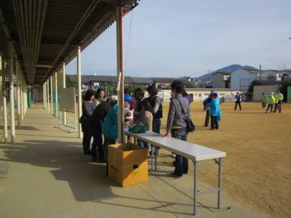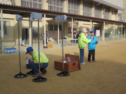 朝、8時30分から、「吉田安心安全まちづくり推進委員会」の方々、川端警察の安全課の方、PTAの要員の方々で準備に来られました。