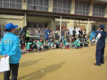 子どもたちは、ゼッケンを付けてもらって、集合です。