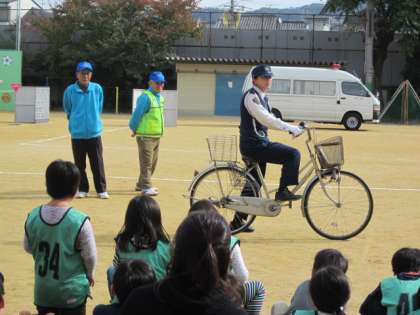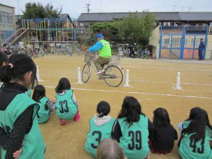 参加者が自転車でやってきます。まず、自転車の点検をしてもらいます。