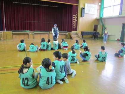 低学年が体育館でクイズに挑戦している間に、高学年は、実技練習とテストです。