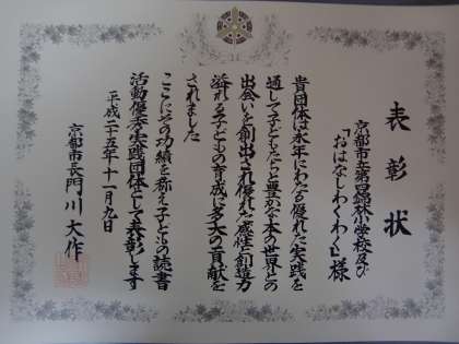 おはなしわくわくと一緒に表彰されました