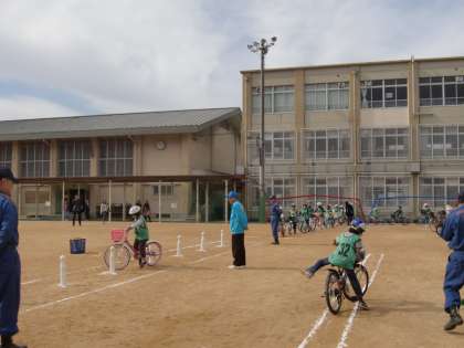 親子自転車安全安心教室が行われました。川端警察署を初め,吉田地域の関係団体の皆さんが大勢来てくださり,充実した内容の自転車教室でした。