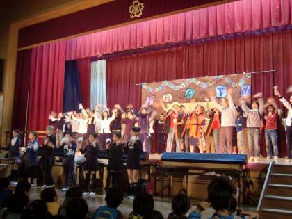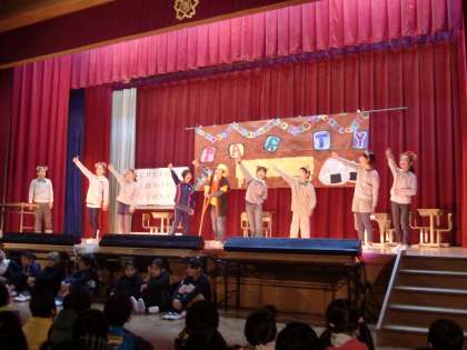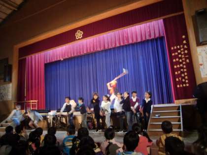 みんながよく知っている『おむすびころりん』を少しデフォルメした英語劇です。動きも大きくて元気でした。