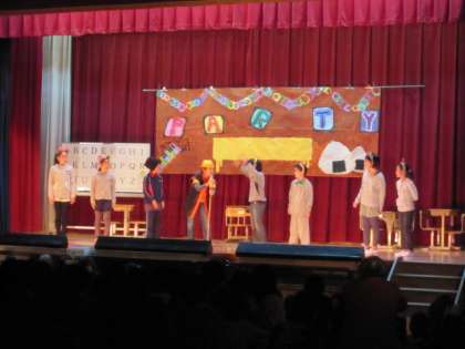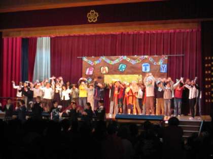 5年生は、「おむすびころりん」を英語で挑戦してくれました。なかなか役者なおじいさんおばあさんがたくさん出演し、かわいいネズミたちも歌や踊りで見せてくれました。楽しいパーティーの様子など、普段の英語の授業の様子を伝えながら、英語の台詞がたくさんでも、しっかり人に伝得ることができることを教えてくれました。