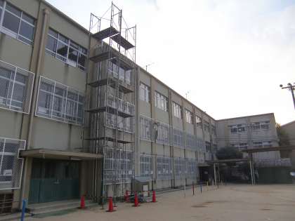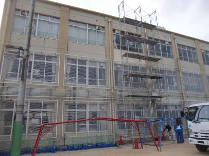 給水管工事のための足場をこしらえています。当たり前のことですが,子どもたちの安全を最優先した工事をしてもらいます。