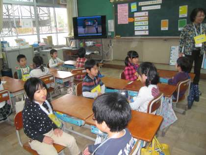 担任と英語ボランティアの方とのやりとりを見た後に,実際にペアでやりとりを何度かしてみました。