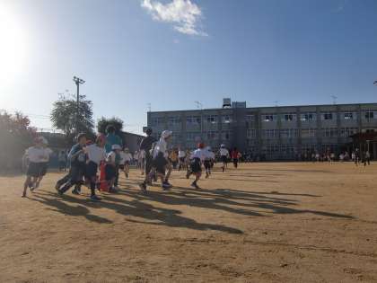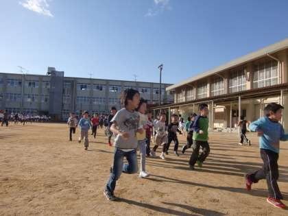 朝ランニングに懸命の子どもたちです。