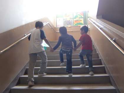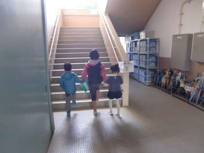 2・3枚目は保護者と離れて,健診会場へ向かう様子です。エスコート役は5年生。大役に緊張気味の5年生の表情が初々しくていいんですが,バックからの写真でご勘弁。