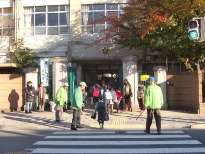 今日は声かけ登校日です。正門のところにはPTAの役員の方々が挨拶のために立ってくださいました。朝早くからありがとうございます。