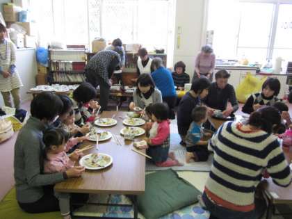 毎月第三木曜日は,いこいの部屋で社会福祉協議会の『すくすくサロン』があります。幼稚園や保育園に行く前の赤ちゃんとお母さんが集まり,子育てについての交流の場となっています。そこには,地域の子育てのベテランの方や児童館の方がおられます。今月は「食育」をテーマに「お米」を使った家庭でできる料理の紹介をされていました。